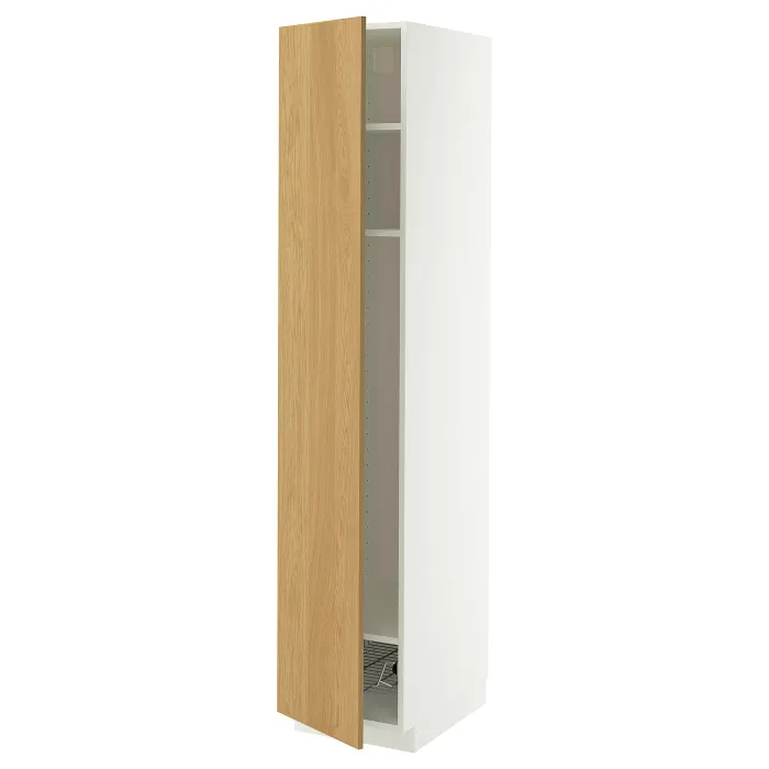 IKEA METOD(996.017.24) Висока шафа, полки/кошик, Білий/Сінарп навколо дуба