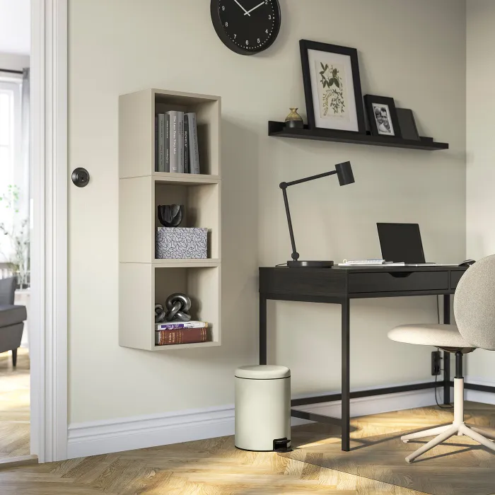З EKET ви можете створити великий простір для зберігання з маленькими шафами. Встановіть їх на стіну, щоб звільнити простір на підлозі та полегшити прибирання.