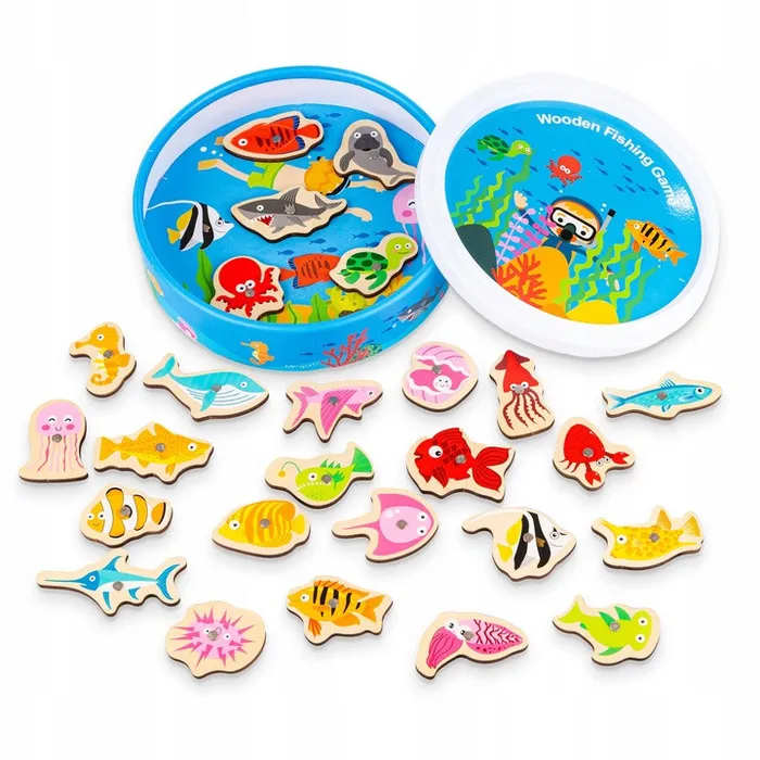 Кожна вудочка має магніт, на який можна ловити маленьких дерев'яних тварин. Перемагає той, хто зловить їх більше!