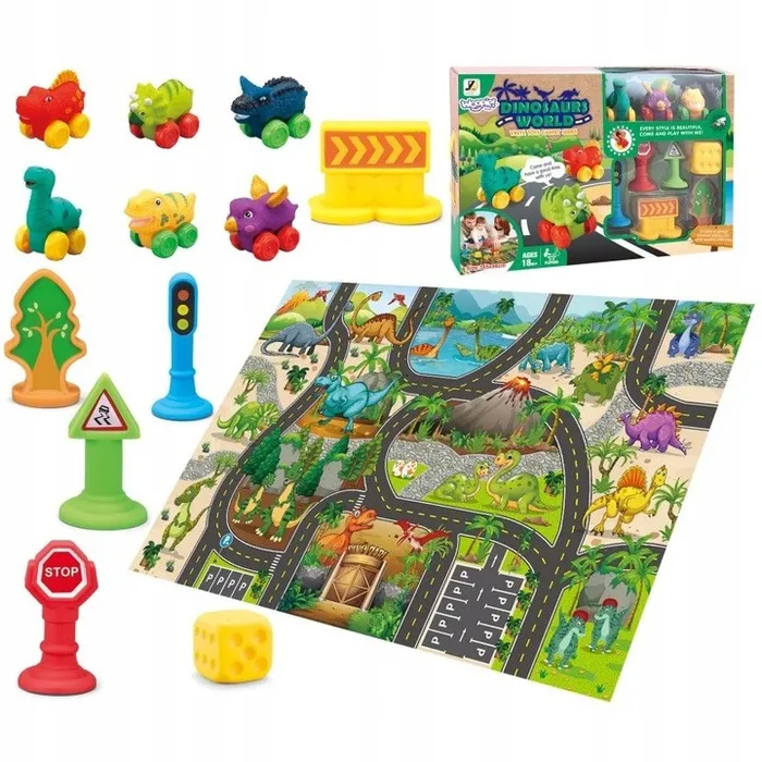 Дорожній килимок на тему динозаврів від бренду WOOPIE стане чудовою іграшкою для вашої дитини. Дитина може сидіти на килимку та керувати машинками -динозаврами . Завдяки таким аксесуарам, як дорожні знаки, ваш малюк зможе вивчити правила дорожнього руху . Крім доріг і парковок, на килимку зображено безліч динозаврів , які спонукають і урізноманітнюють гру вашу дитину. Такі елементи, як машинки, кубики та дорожні знаки , м'які , їх можна стискати – безпечно для дітей! Килимок розвиватиме у вашої дитини спритність рук , уяву та творчі здібності .
