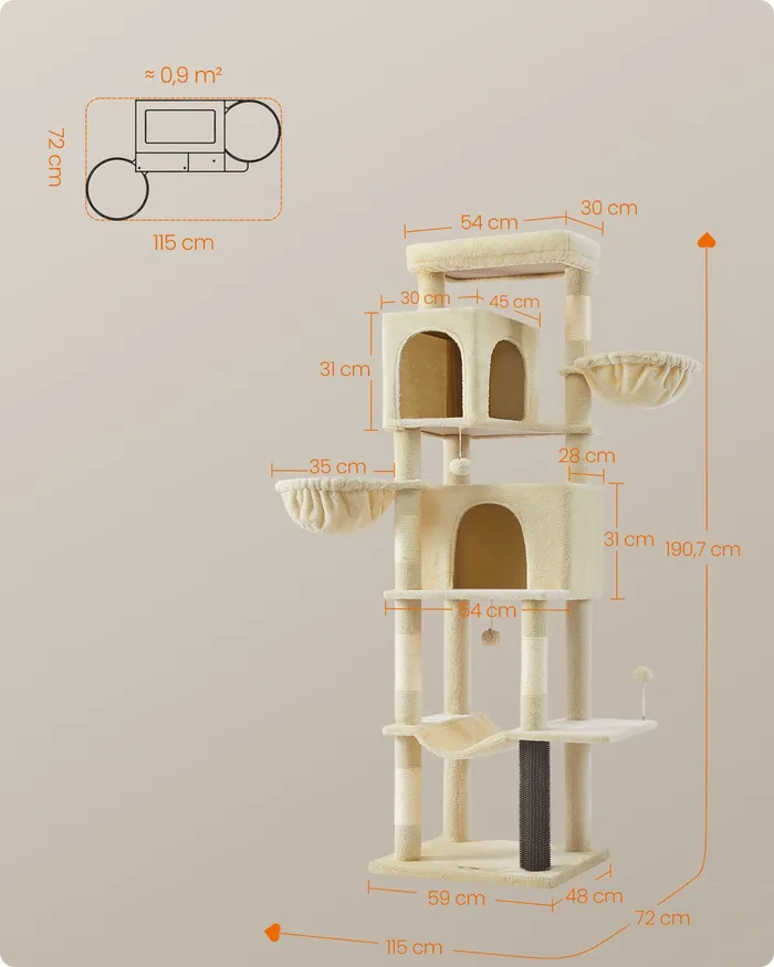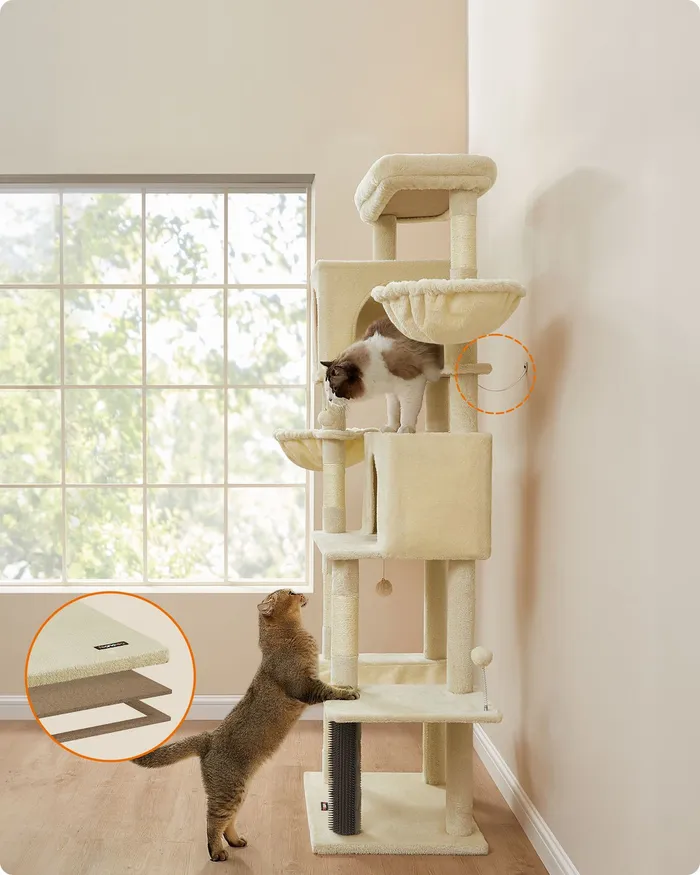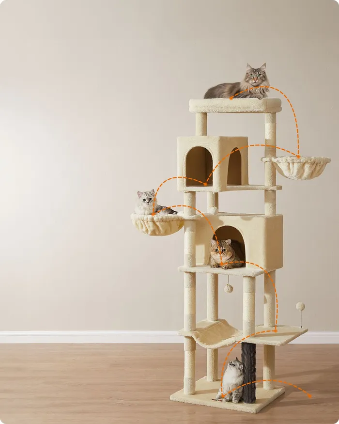 Багаторівневе котяче дерево для бежевої кішки 190,7 см