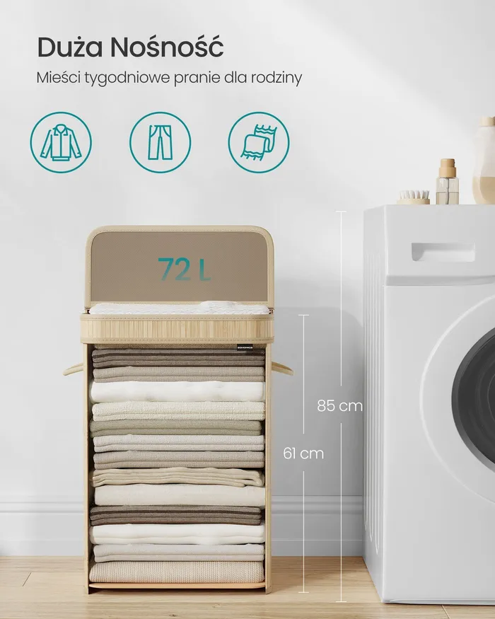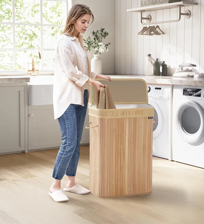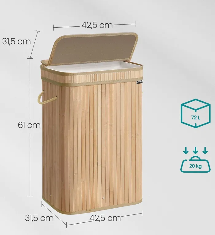 Бамбуковий пральний кошик із кришкою 72 л.