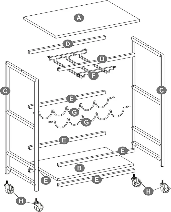 БАР ДЛЯ ПЛЯШОК І СКЛА НА КОЛЕСАХ 60 СМ ЛОФТ