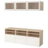 IKEA BESTÅ (894.087.03) комбінація для телевізора / скляні двері, ефект білого мореного дуба / блиск Selsviken / біле прозоре скло