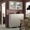 IKEA BESTÅ(594.215.55) поєднання полиці з дверцятами/шухлядами, біле Lappviken / Stubbarp / світло-сіро-бежеве прозоре скло