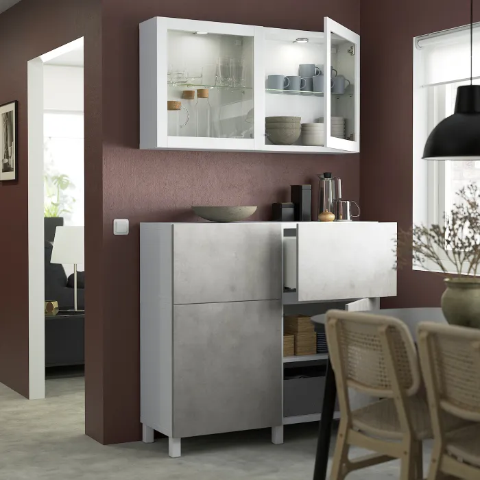 IKEA BESTÅ(394.215.56) поєднання полиці з дверцятами/шухлядами, білий Kallviken / Stubbarp / світло-сіра імітація бетону