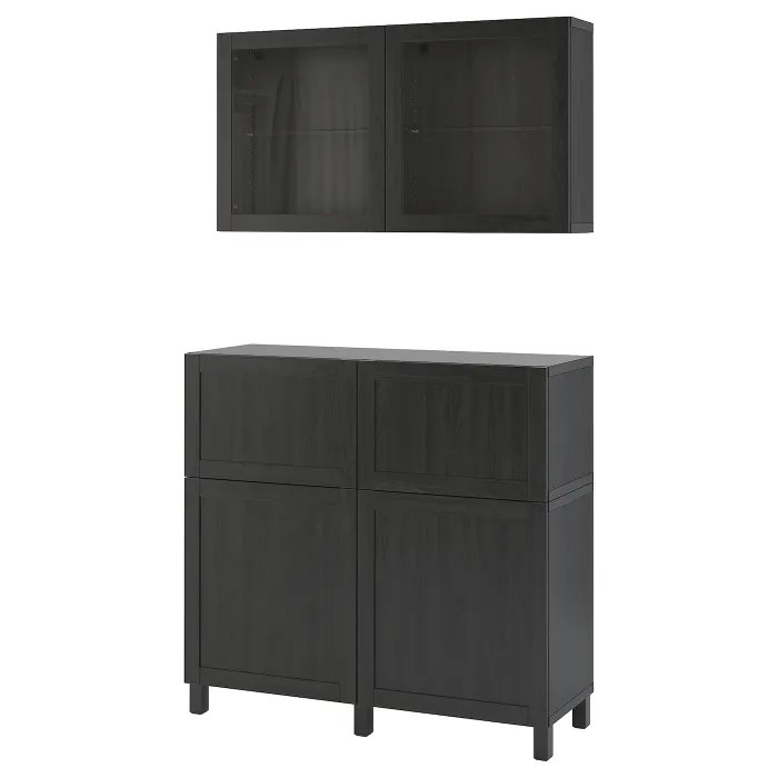 IKEA BESTÅ(694.124.90) поєднання полиці з дверцятами/шухлядами, чорно-коричневе / Hanviken / Stubbarp чорно-коричневе прозоре скло