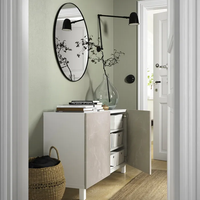 IKEA BESTÅ(594.214.33) поєднання з дверима, білий Bergsviken / Stubbarp / імітація бежевого мармуру