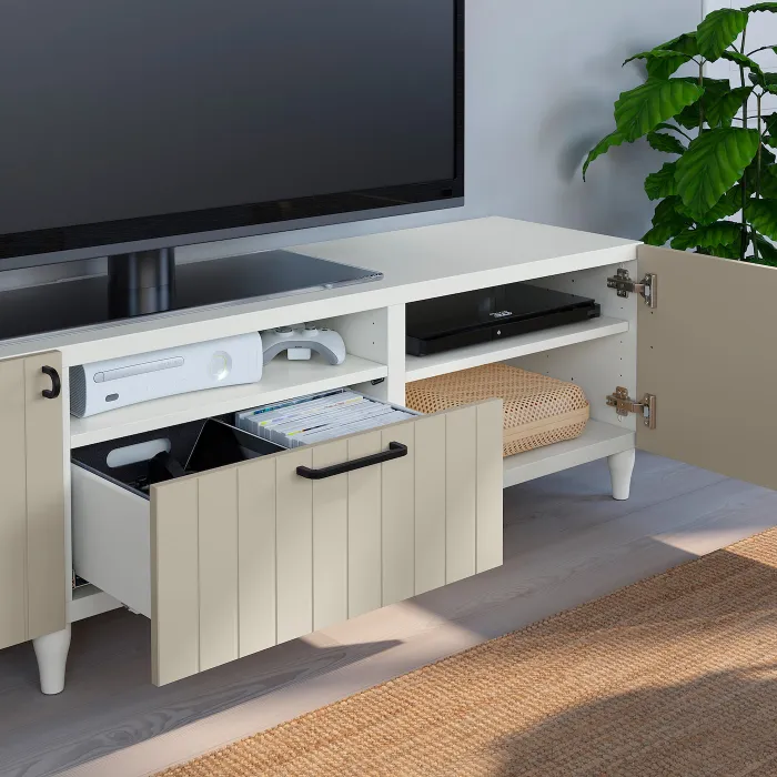IKEA BESTÅ(993.989.68) тумба під телевізор, білий / Sutterviken / Kabbarp сіро-бежевий