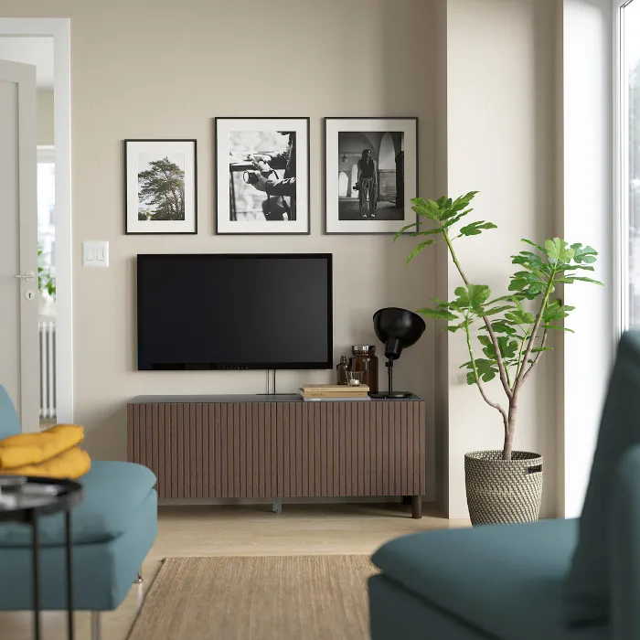 IKEA BESTÅ(594.199.01) Тумба під телевізор з дверцятами, чорно-коричневий Björköviken / Mejarp / дубовий шпон коричневого кольору