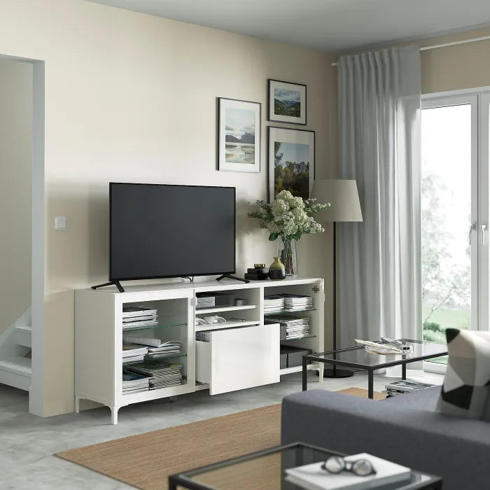 IKEA BESTÅ (294.215.14) Тумба під телевізор з ящиками, білий Glassvik / Selsviken / Nannarp білий