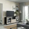 Тумба під телевізор повинна бути трохи ширше телевізора, який стоїть на ній. Ця тумба підходить для телевізора до 72 дюймів. Ви можете вибрати більший телевізор, якщо його вага не перевищує вказане максимальне навантаження на стіл.