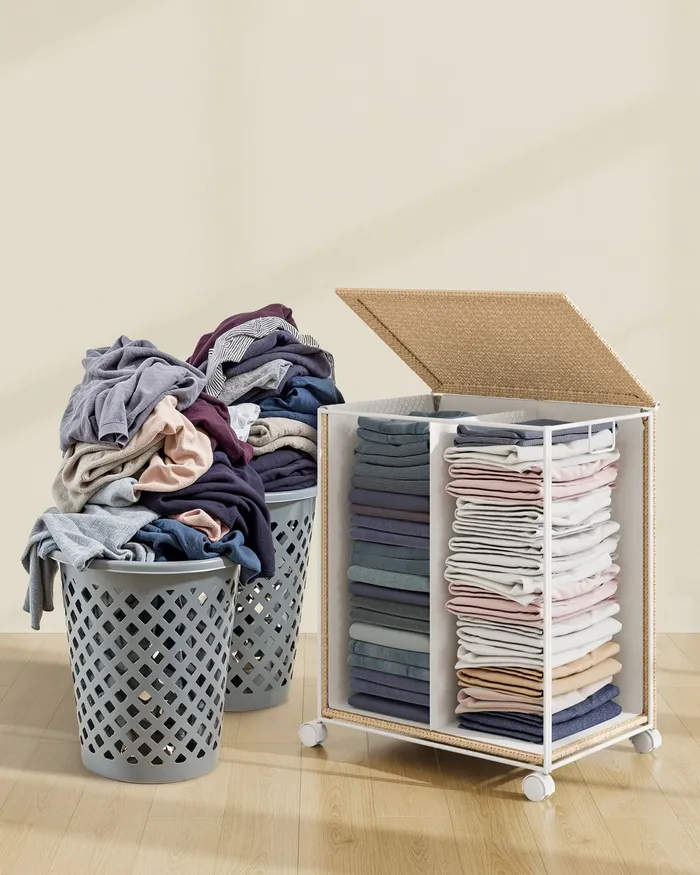 Бежевий мобільний кошик пральньний 2 х 50 л
