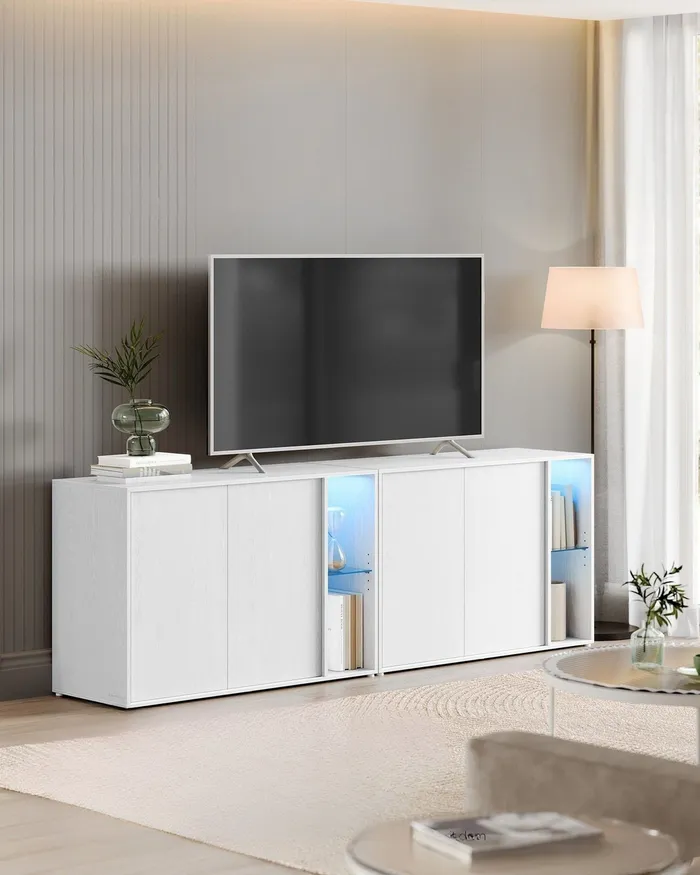 Біла шафа RTV зі світлодіодним освітленням RGB