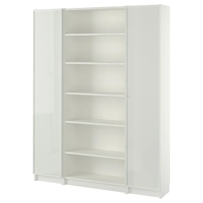 Книжкова шафа BILLY — це улюблений, культовий предмет меблів, який має багато застосувань. Двері HÖGBO пропонують 4 вирази в 1, тож ви можете обрати зовнішній вигляд – скляні двері, панельні двері чи персоналізований вигляд із фотографіями, тканиною чи шпалерами.
