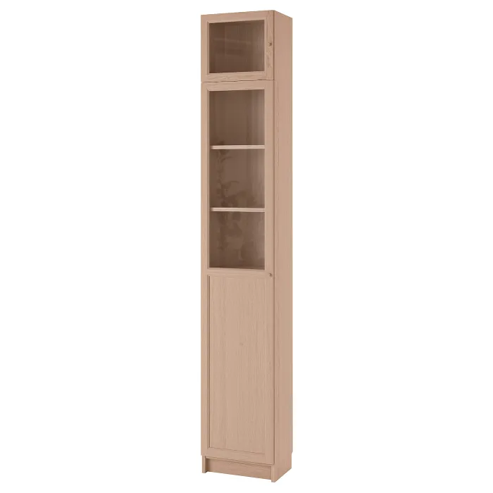 IKEA BILLY / OXBERG (892.874.28) книга рег з надст / дрз пан / скл, дубовий шпон білий морений / скло