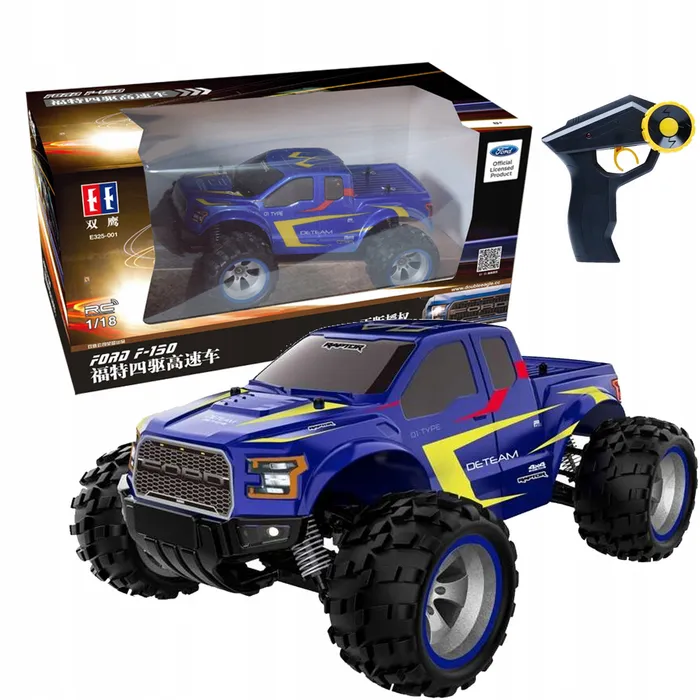Автомобіль Ford F-150 Raptor виготовлений із високоякісних матеріалів і має синій кузов . У цій машини в масштабі 1:18 чотири великі колеса, , тому вона зможе впоратися з будь-якою перешкодою. Він може розвивати швидкість до 20 км/год . Є робочі фари . Офіційна ліцензія Ford