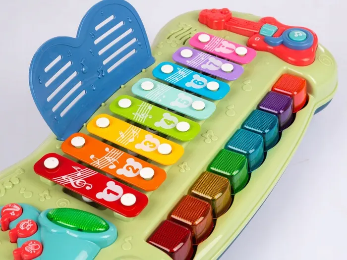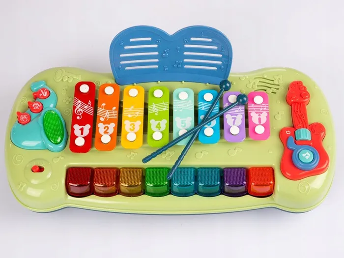 8-тональні тарілки та фортепіано в одному – це гарне навчання та веселощі. Під час звучання мелодії можна грати на тарілках або клавішних. Англомовна версія .