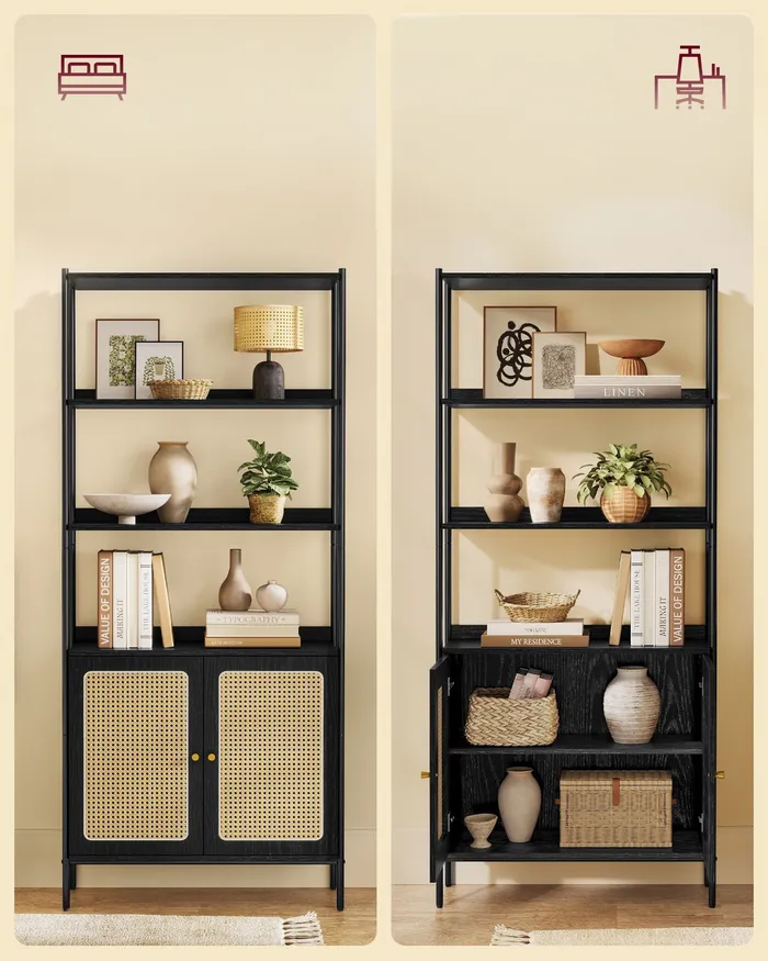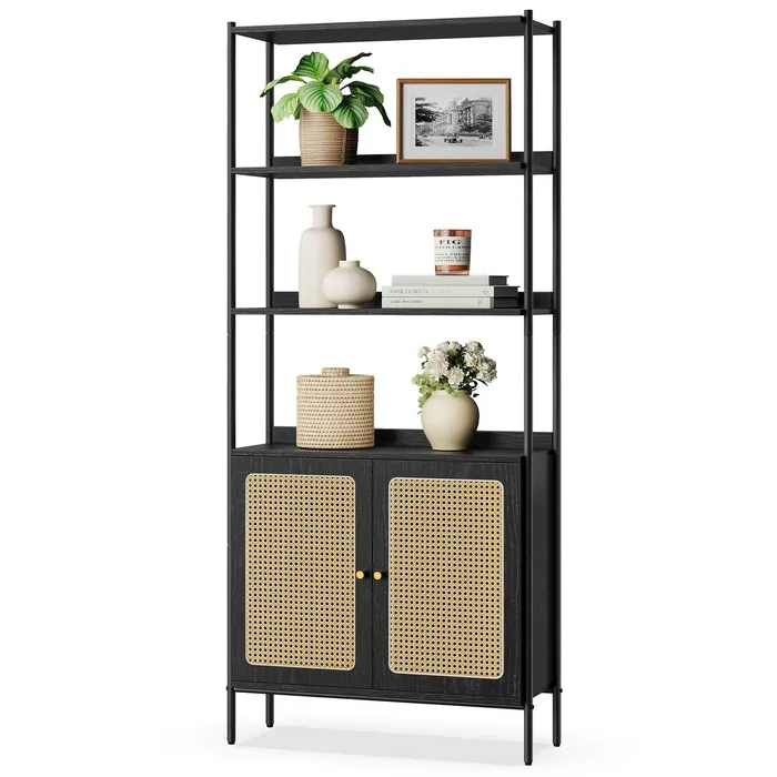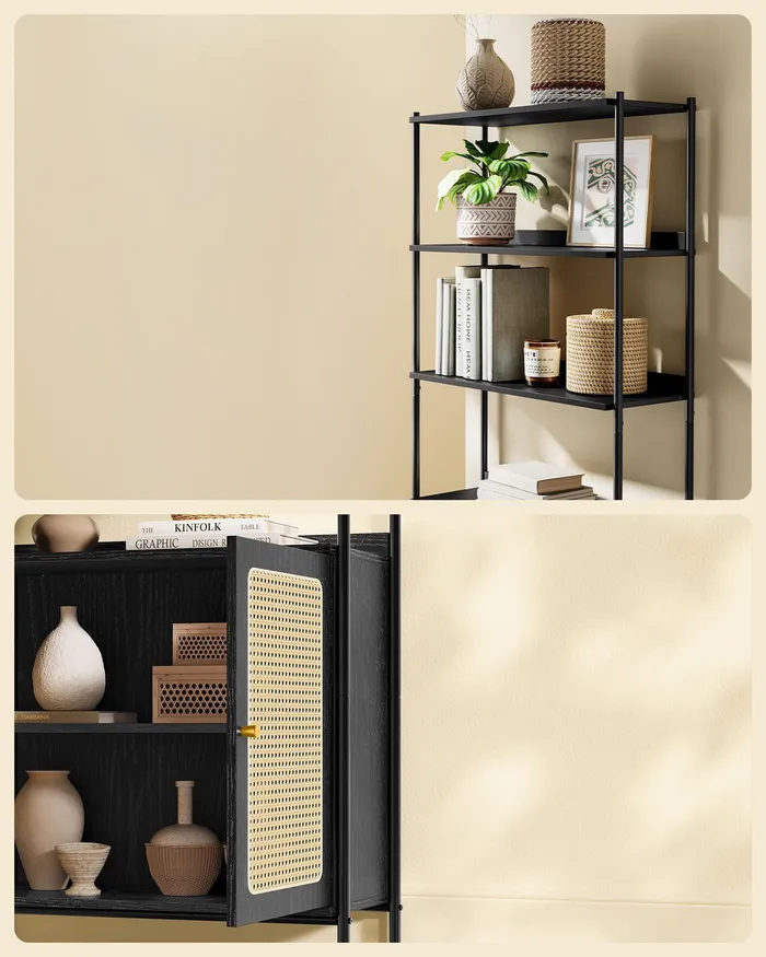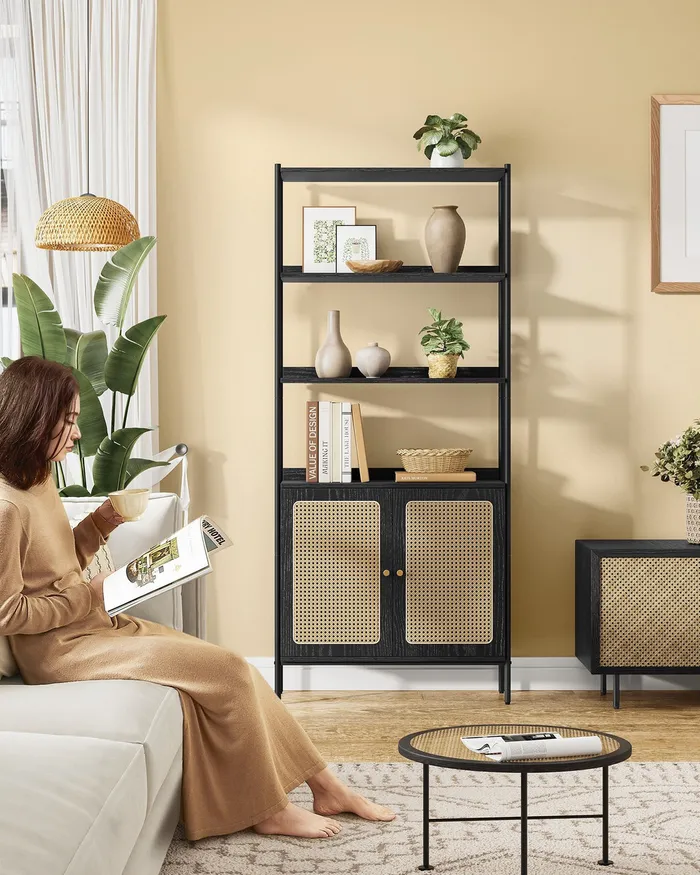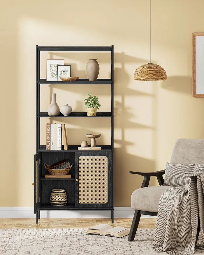 Чорна книжкова шафа з шафою із 6 полиць із 6 полиць