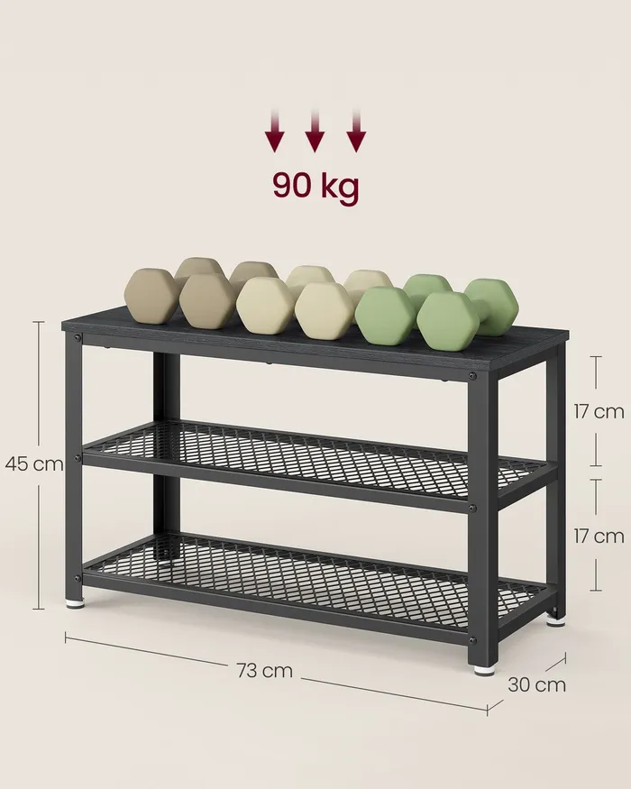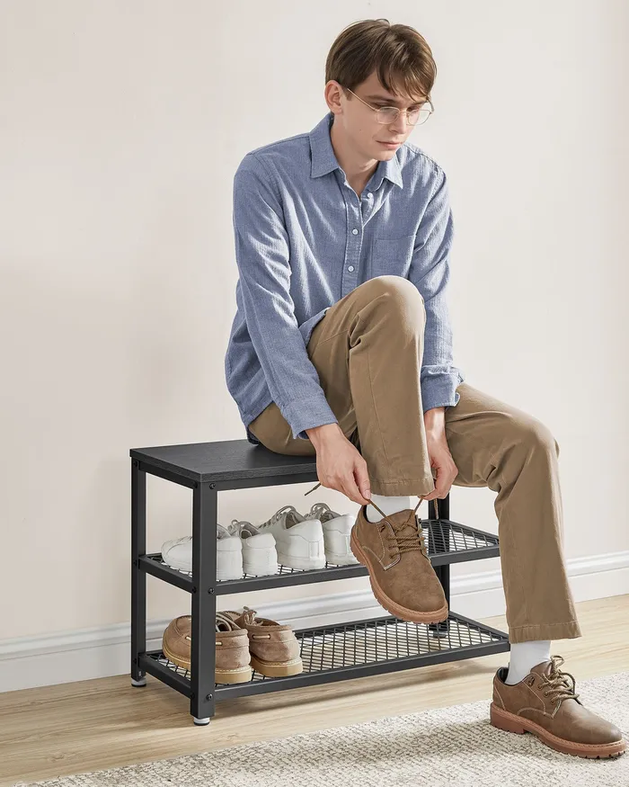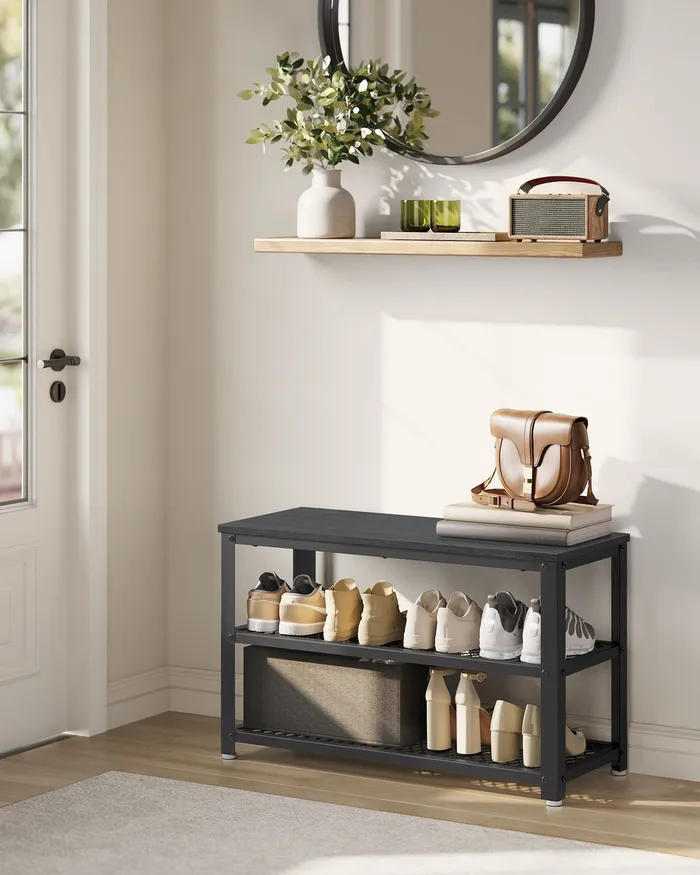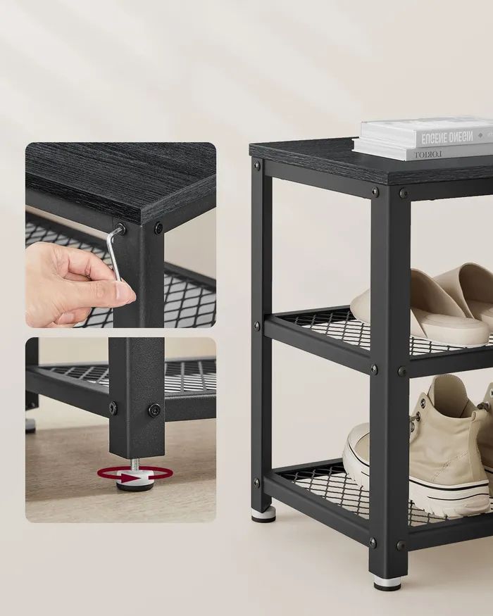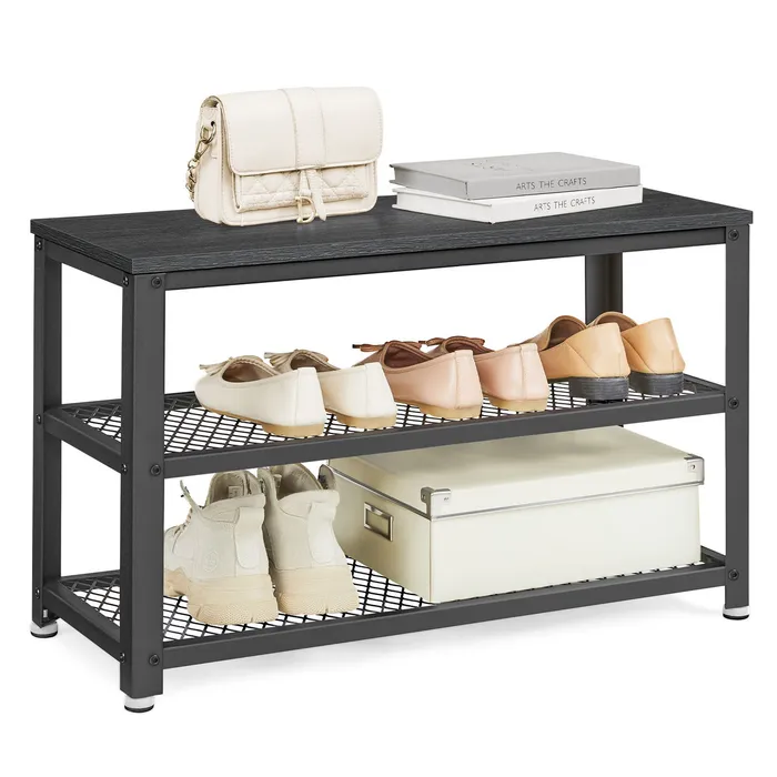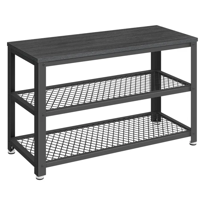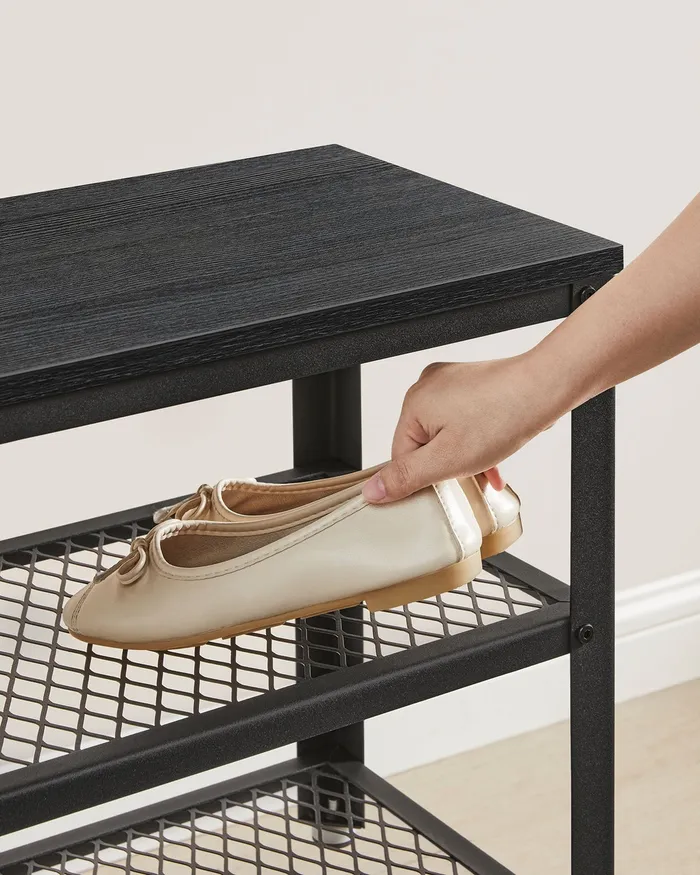 Чорна шафа для взуття 2 полиці із сітки