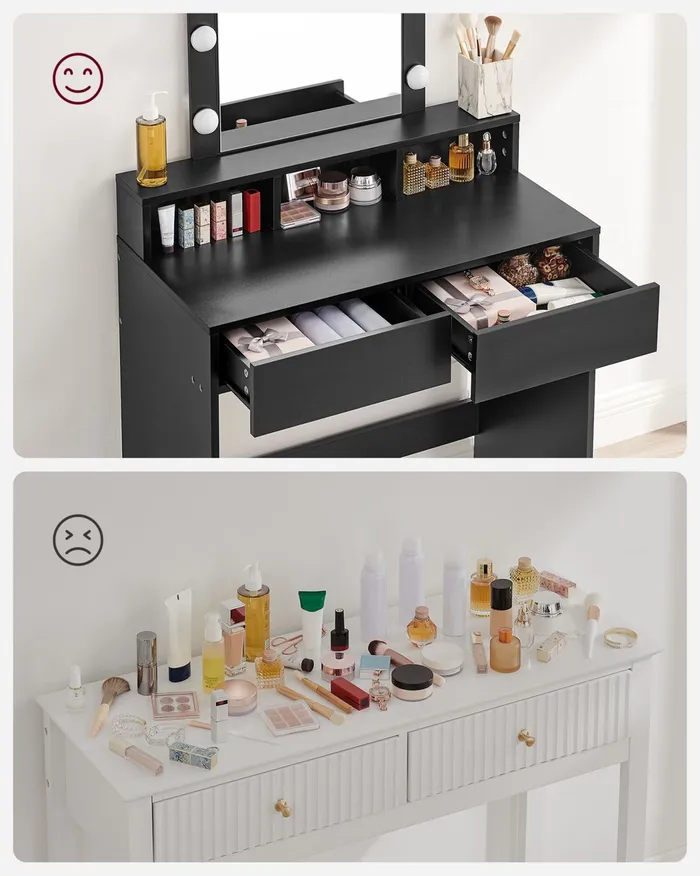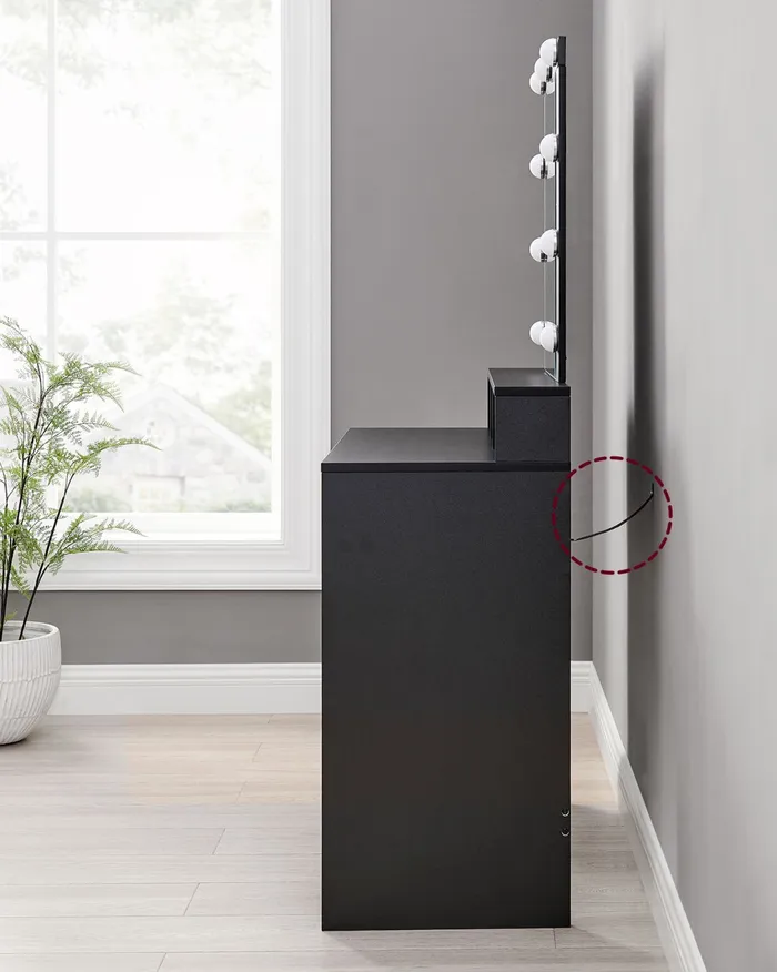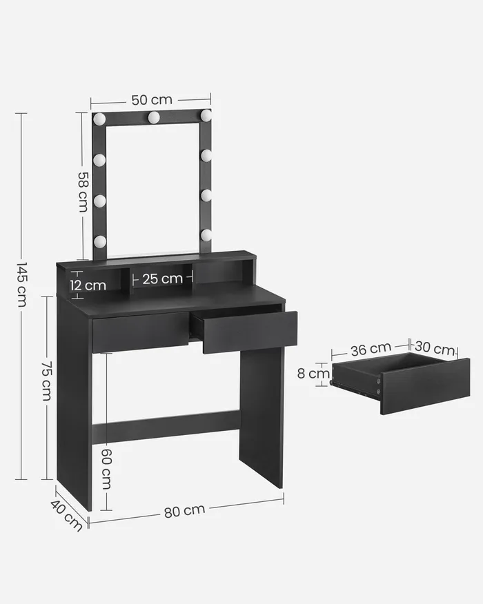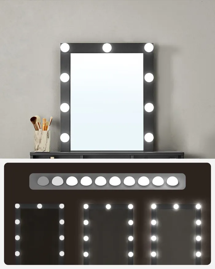 Чорний туалетний столик зі світлодіодними лампами дзеркала