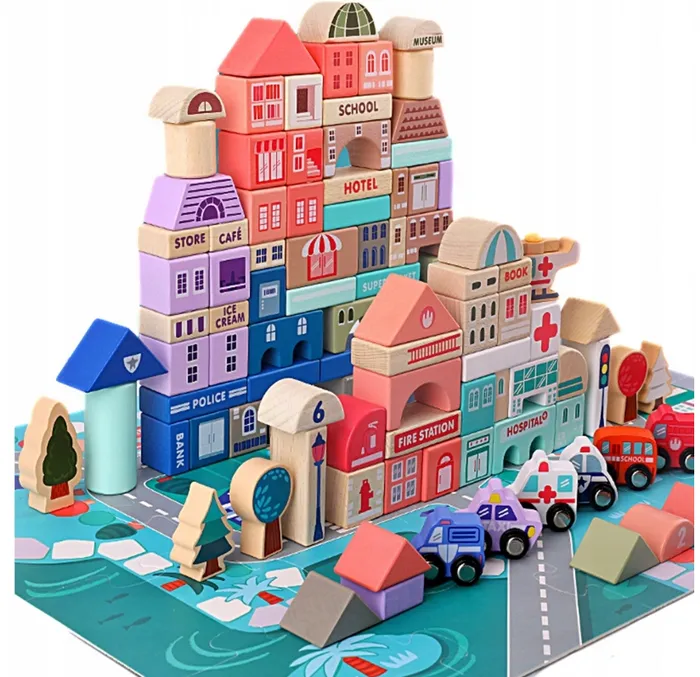 Дерев'яні міські кубики - ідеальний подарунок для кожної дитини. Задоволення від будівництва міста не має собі рівних, тому це одна з улюблених іграшок кожного малюка. Крім неймовірних веселощів, які приносить містечко, ця іграшка надає низку корисних функцій. Облаштування містечка допомагає розвивати координацію рухів, підтримує розвиток уяви і просторового мислення, розвиває логіку і планування.