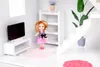 Гарний великий ляльковий будиночок, повністю білий. Гарне оформлення кімнати дівчинки в скандинавському стилі.