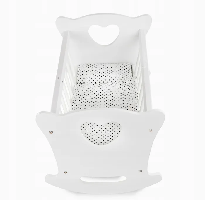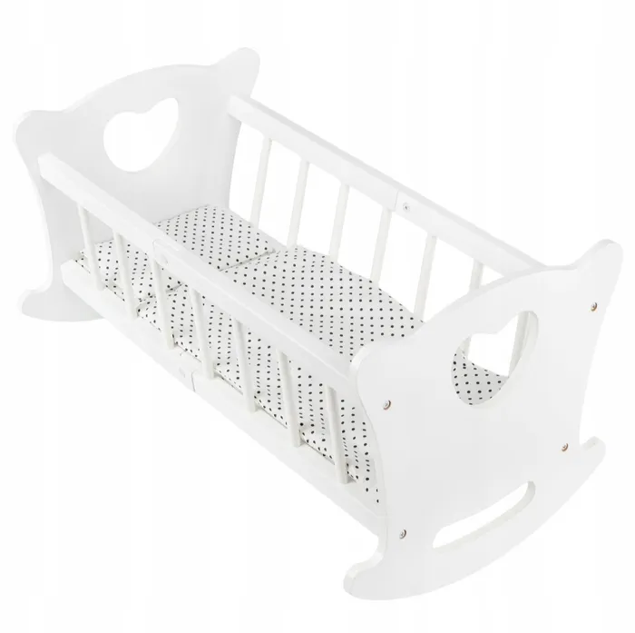 Наша кукольная колыбель сочетает в себе классическую эстетику и долговечность. Очаровательный мотив в виде сердца и универсальная цветовая гамма сделают её прекрасным дополнением к любой детской комнате. Тщательно отполированные деревянные элементы гарантируют, что игрушка прослужит долгие годы, побуждая к долгим часам творческого ухода за куклой.