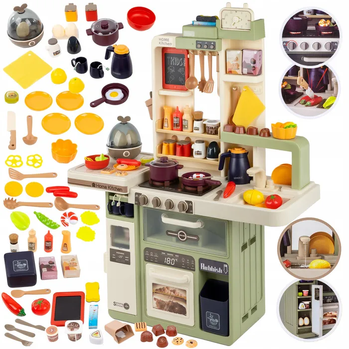 - Цей чарівний набір не тільки розвиває ручні навички, а й вчить основним принципам співпраці та самостійності. Завдяки барвистому і доброзичливому дизайну наша дитяча кухня стане улюбленим місцем для маленьких кухарів, де вони зможуть побувати в ролі справжніх майстрів кулінарної справи.