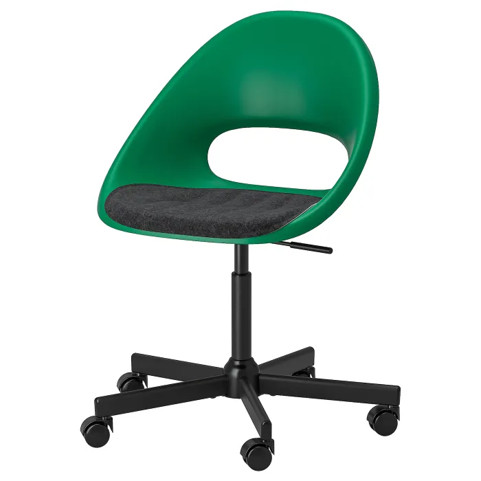 Зелений колір крісла поєднується з письмовим столом LAGKAPTEN / TILLSLAG із зеленими опорами.