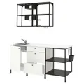 Серія ENHET дозволяє легко запровадити нове рішення на кухні. Ця комбінація пропонує ідеальне поєднання відкритого та закритого зберігання, а також стільниці з зоною для приготування їжі в невеликому, але добре спланованому просторі.