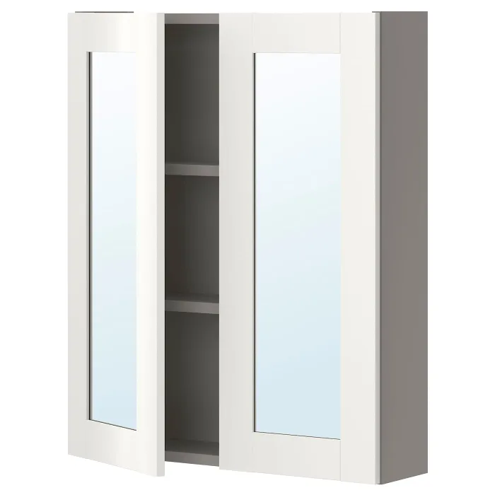 IKEA ENHET(093.236.61) шафа з дзеркалом і дверцятами, сіро-біла рамка