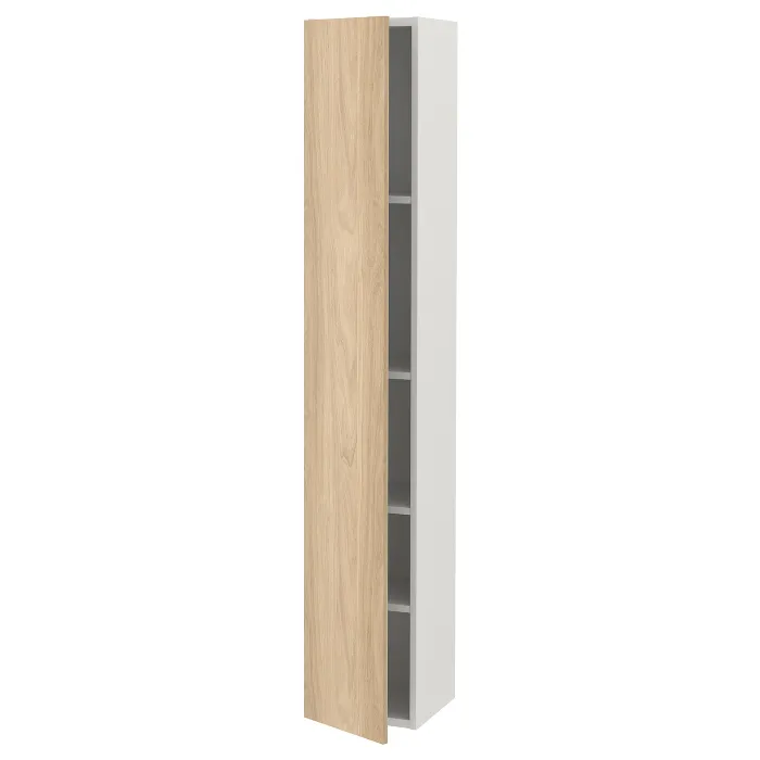 Серія ENHET полегшує новий старт на кухні, у ванній чи пральні. Ця висока шафа пропонує багато місця для зберігання на невеликій площі, а дубові двері створюють теплий і живий вигляд.