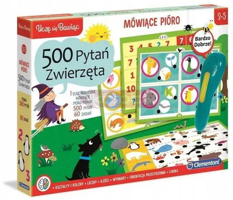 Завдяки грі «Розмовляюча ручка: 500 запитань: Тварини» діти віком від 3 до 5 років дізнаються про їхні відмінні риси, досліджують їхнє середовище існування та відкривають для себе цікаві факти про них, граючись зі своїми друзями-тваринами. Розмовляюча ручка супроводжує дитину під час гри за допомогою світлових ефектів та кумедних звукових повідомлень. Освітній проект, що лежить в основі цієї гри, був розроблений, щоб пробудити у дітей інтерес до тваринного світу та бажання відкривати його таємниці. 60 запропонованих завдань охоплюють різні області та розвивають логічні, мнемонічні, числові, мануальні та спостережливі навички в ігровій формі.