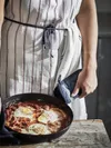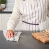 Під час приготування їжі або протирання посуду бажано мати під рукою ганчірку. Ця тканина виготовлена з чистої бавовни та має непомітні блакитні смужки та петлю на короткій стороні для зручного підвішування.