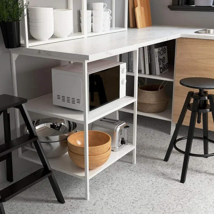 Цей відкритий шафа з 2 полицями забезпечує хороший огляд і спрощує доступ до мікрохвильової печі, каструлях, мисках або посуді.