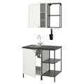Серія ENHET дозволяє легко запровадити нове рішення для вашої кухні чи пральні. Ця комбінація пропонує ідеальне поєднання відкритого та закритого зберігання та всіх необхідних функцій на відстані 105 см.