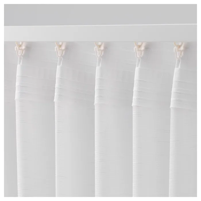 Гардини, 2 шт., БілийГардини пропускають світло, але забезпечують інтимність, тому ідеально підходять для вікон з склінням великі портали.Штори можна використовувати на karniszach або рельсам.Верхняя стрічка дозволяє легко робити складки за допомогою гачків RIKTIG.Штори можна повісити на карниз, завдяки засунутим szlufkom або за допомогою кілець і гачків.