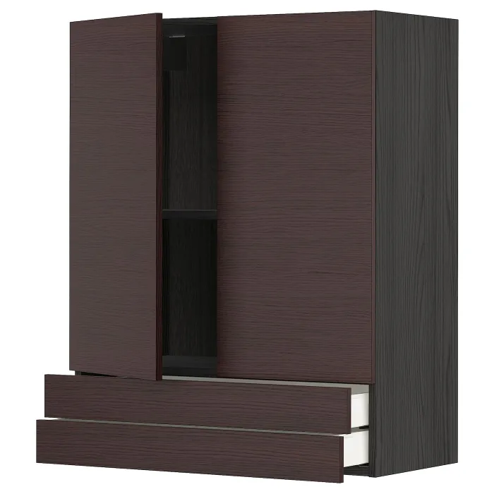 IKEA METOD / MAXIMERA(094.613.51) шафа, 2 двері / 2 ящика, Askersund чорний/темно-коричневий попелястий імітація