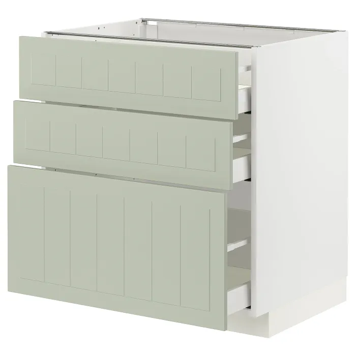 IKEA METOD / MAXIMERA(094.872.33) нижня шафа з 3 ящиками, білий/Stensund світло-зелений