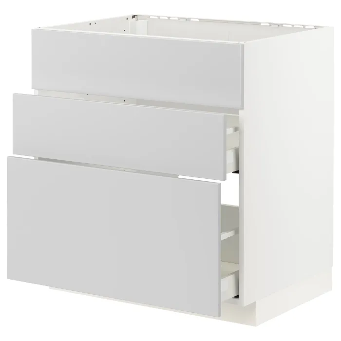 IKEA METOD / MAXIMERA(193.356.30) стояча шафа / витяжка з ящиками, білий/Veddinge сірий