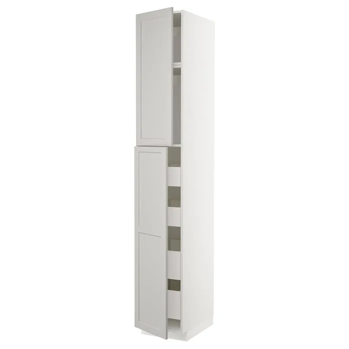 IKEA METOD / MAXIMERA(594.660.06) 2-дверна / 4-ящикова висока шафа, білий/Lerhyttan світло-сірий