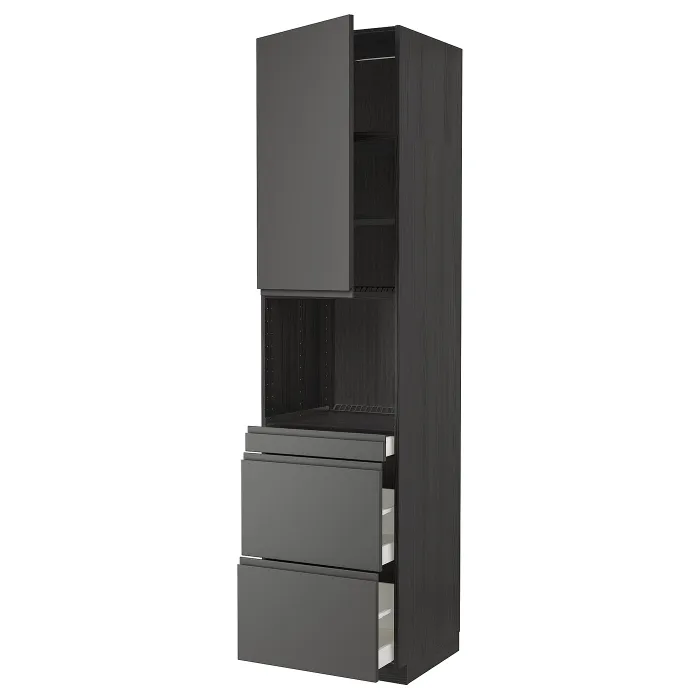 IKEA METOD / MAXIMERA(994.642.89) відділення для мікрокомбінованих дверей / 3 двер, чорний/Voxtorp темно-сірий