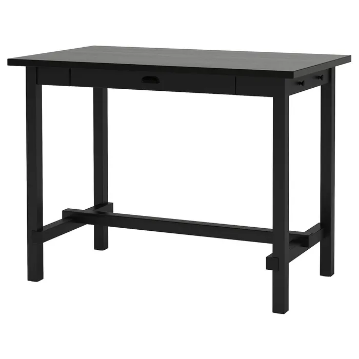 Стіл барний, чорний, 140x80 смСтільниця: ДСП, шпон jesionowa, шпон jesionowa, Морилка, Пофарбовані безбарвним акриловим лаком, папір, Рама нижня / Фронтальна панель ящика: Масив сосни, Клей, Морилка, Пофарбовані безбарвним акриловим лаком бокова частина ящика / Задня стінка ящика: Масив сосни, Клей Дно ящика: дВП, фарба водна: масив берези, Клей
