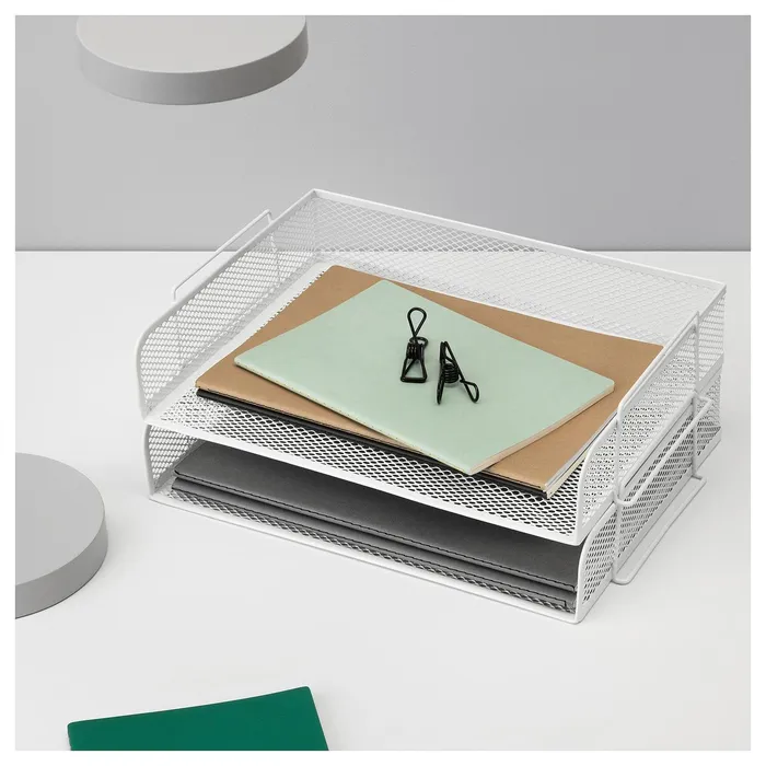 Лоток списку має 2 рівня, на яких ви можете подати свої рахунки і вільно лежащая.Мягкіе ніжки із пластику захищають поверхню під ним від подряпин і роблять, що піддон на листи стабільно стоіт.Удобно ставити один на інший, але кожен рівень можна також використовувати окремо.