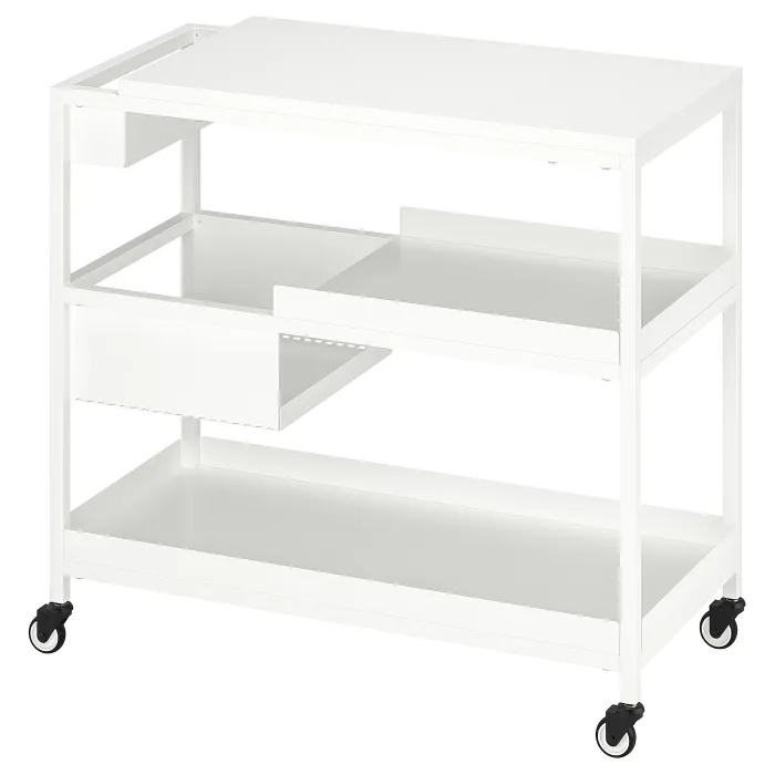 Розмістіть візок ближче до свого столу, щоб отримати більше робочого простору або мати під рукою практичні місця для зберігання. Візок має такі ж розміри, як стільниця TROTTEN.