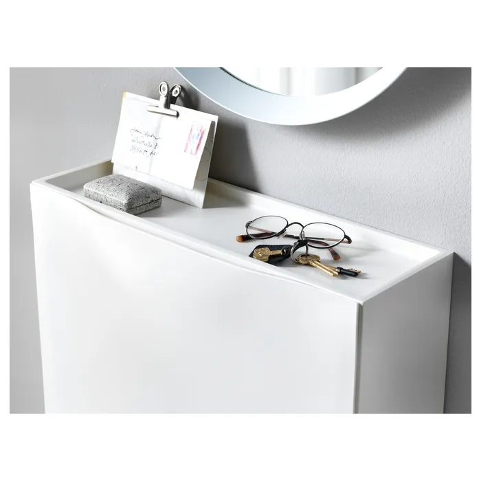 Шафа плитка і займає мало місця, завдяки чому ідеально підходить для зберігання взуття, рукавичок і шарфов.Еслі ваші потреби ulagną зміни, з легкістю, ви отримаєте більше місця для зберігання, встановивши кілька шаф один на одного або поруч один з другом.Нішу у верхній частині шафи можна використовувати для зберігання дрібних речей, таких як ключі , монети або мобільний телефон.Дверь легко зняти, якщо ви хочете очистити свій шафку всередині.