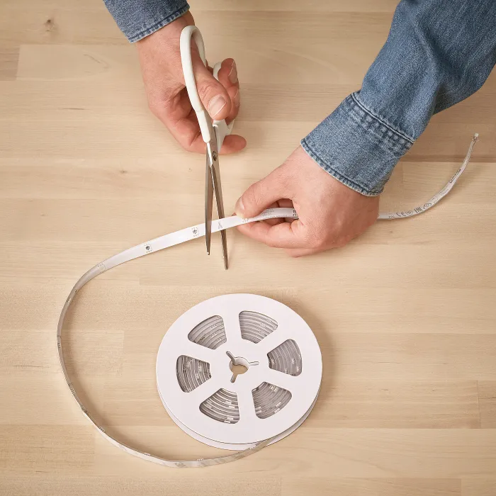 Смугу освітлення можна легко вкоротити, розрізавши її там, де вона позначена маленьким символом ножиць.