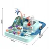 Це ідеальний інструмент для розвитку уяви і ручних навичок , а також приносить масу задоволення. Автомобільна траса надає не тільки можливість катання, а й динамічні інтерактивні елементи , керовані за допомогою кнопок та ручок. Це захоплююча гра, що вимагає концентрації та спритності. До набору входять три машинки, які можуть вільно досліджувати трасу, залежно від фантазії дитини. Транспортні засоби урізноманітнять веселощі або дозволять дітям позмагатися на трасі. Їзда трасою здається легкою, але численні елементи, такі як шестерні або підйомні мости, зроблять подорож повною адреналіну .