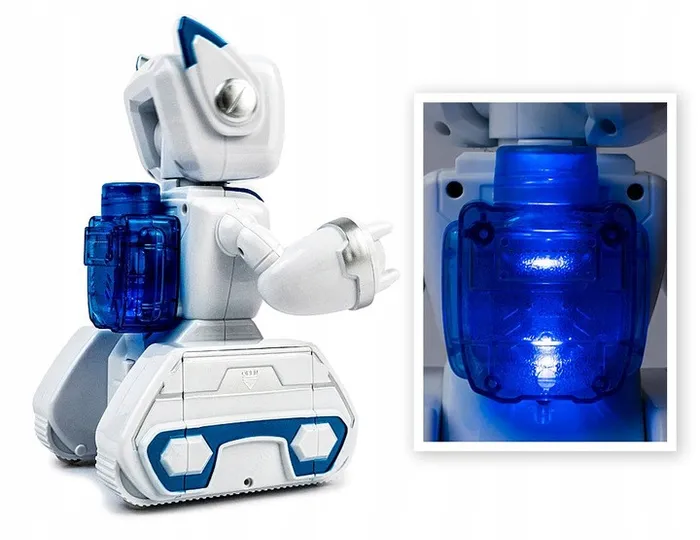 Робот K11 подарує дітям масу задоволення під час гри. Він рухається в усіх напрямках , а коли натрапляє на перешкоду, проминає її, повертається назад і йде далі. Спереду має активний сенсорний екран , на дотик якого реагує рухом голови та звуком ! Робот вміє говорити мовою роботів , а після натискання відповідних кнопок на пульті також танцює під його музику або йде на патрулювання .